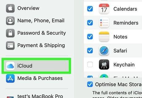 4. 点击iCloud。您可以在右侧面板中找到它。
