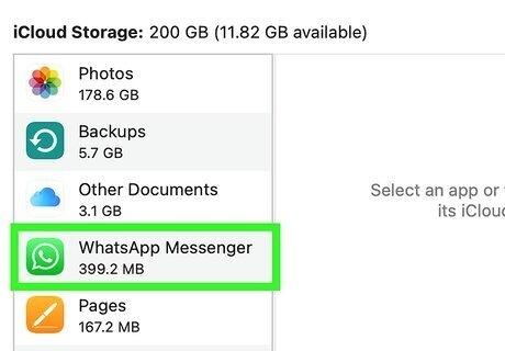 8. 点击一个应用程序查看其存储的数据。根据应用程序的不同,您可能会看到它已保存到您的iCloud存储中的文档和其他数据的列表。