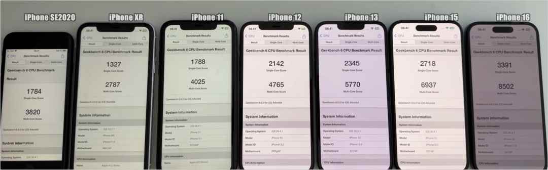 ② iPhoneSE2、iPhone11、iPhone12、iPhone13、iPhone15 的单多核跑分都得到提升,或较为稳定