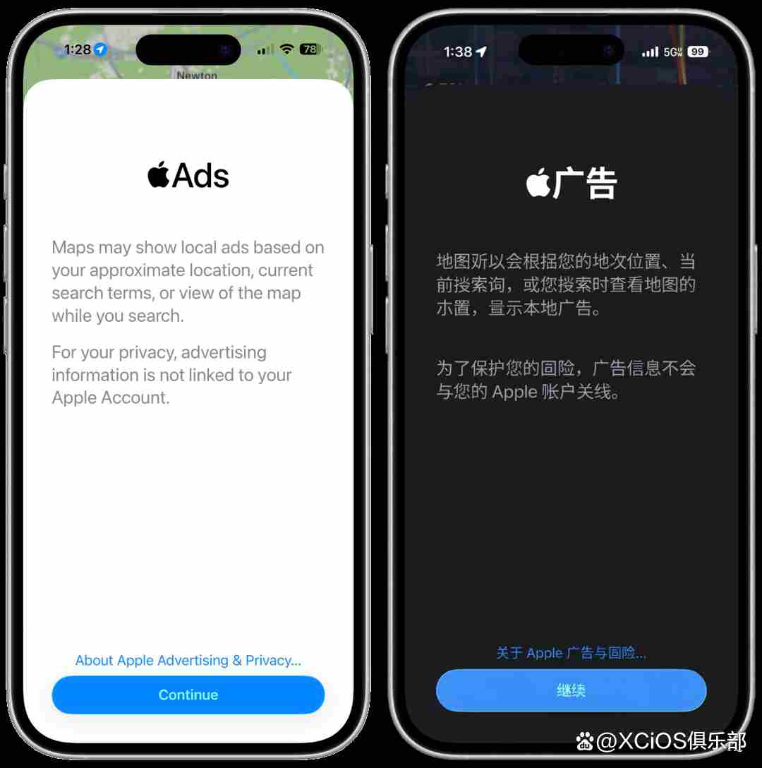 首先新功能方面,此版本唯一的可见新功能就是首次给自带的苹果地图引入了「搜索栏广告」和「推荐地点广告」,所幸这些广告目前国内还没有正式加入。