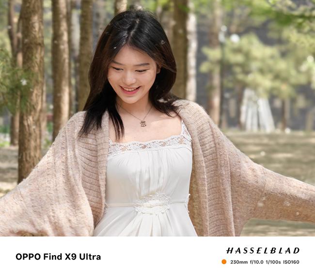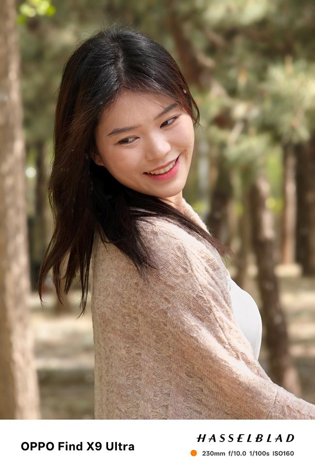而2亿像素的优势并不局限于风光,拍人像同样是一把好手。OPPO Find X9 Ultra搭载了专为人像打造的LUMO凝光人像系统,依托新一代瞬时三曝光技术与超聚光棱镜的软硬协同,实拍中画面不再有过度锐化的塑料感,发丝、睫毛根根分明,面部光影过渡却格外自然柔和。这种源于真实光学而非暴力算法的质感,让每一张人像既有清晰立体的轮廓,又保留了肌肤应有的温度与呼吸感。