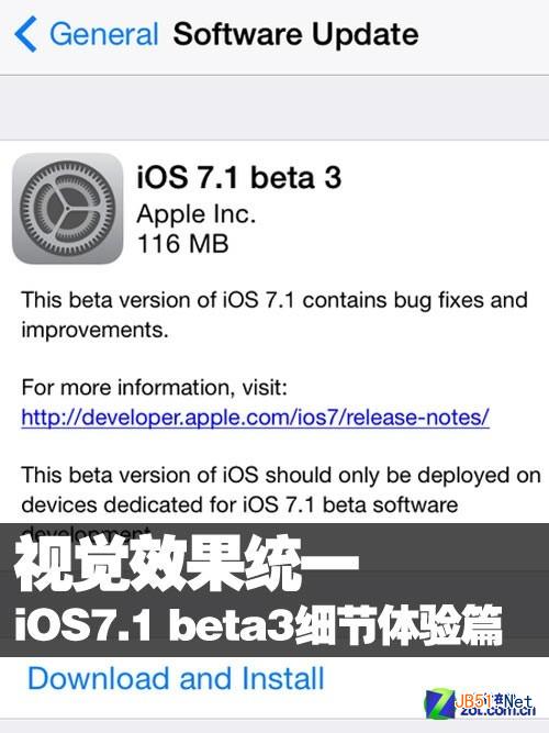 1月8日苹果就已经放出了iOS7.1 beta3版本的更新。此次更新的版本为116MB,相比之前的beta2容量空间更大。升级版本宣称修复了之前存在的更多漏洞,同时也带给了我们一些新的视觉体验。经过一周多时间的体验后,笔者也有一些使用心得和大家分享。