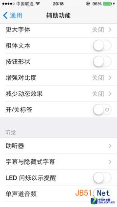 另外一个可调节项是减少动态效果,同时这项功能也被单独的列举出来。我们知道苹果iOS7系统界面上的特色除了五颜六色以及扁平化之外,在动画上也进行了重新调整。这主要体现在从待机界面进入主界面,或者是启动应用、关闭应用上。