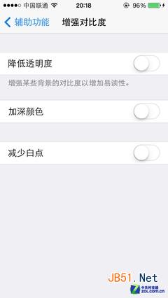 3、减少白点:经常听到有些人抱怨苹果的屏幕亮度开到最大时显示效果有些太过白了,那么现在开启这项功能,可以有效缓解这种过白的现象,让屏幕的亮度略微柔和。