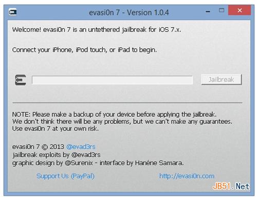 2013年圣诞前,Evad3rs破解团队曾在毫无征兆的前提下发布了iOS7完美越狱工具,给全世界所有果粉们奉上了一份圣诞大礼。而在经历了太极助手风波之后,现在Evasion7已经迎来了v1.0.4版本,同样支持iOS7.1 beta3版本的越狱。之前存在的一些Bug问题现在基本得到了修复,但还是要建议在安装插件时尽量到论坛中搜索其他网友的安装结果再进行安装以免出现不兼容的现象,尤其是在iOS7.1 beta3这个测试版本下。