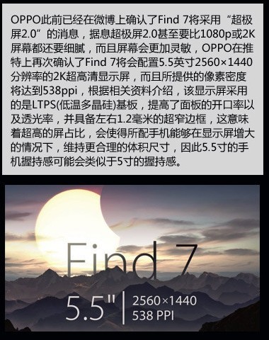 关于OPPO Find 7特性亮点,我们通过以下这张图片即可明了。