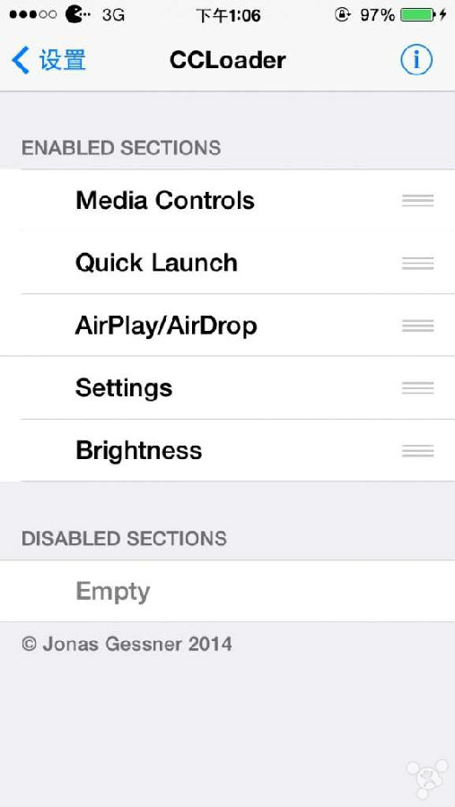 下面的DISABLED SECTIONS是你在控制中心不启用的部分