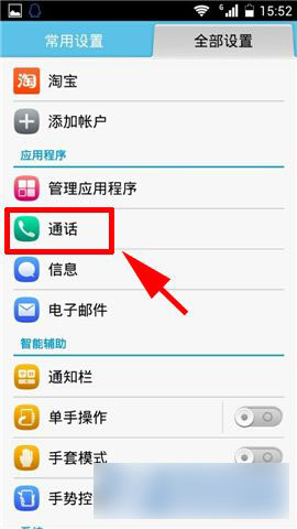 1)打开华为荣耀3X畅玩版的【设置】,选择【通话】选项。(如下图)
