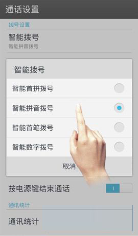 2)在【通话设置】里点击【智能拨号】,可以看到有多种智能拨号模式,找到最适合你的一种。(如下图所示)