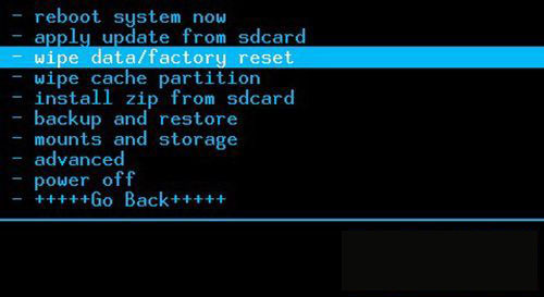 操作步骤:wipe data/factory reset——Yes——delete all user data