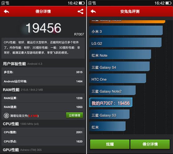 OPPO R3的安兔兔跑分结果