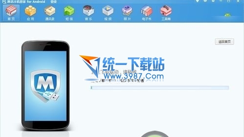 3、用数据线将手机和电脑连接起来,然后运行腾讯管家,此时腾讯管家会自动识别联网下载该机型对应的驱动程序,在这过程中不要断开网络连接;
