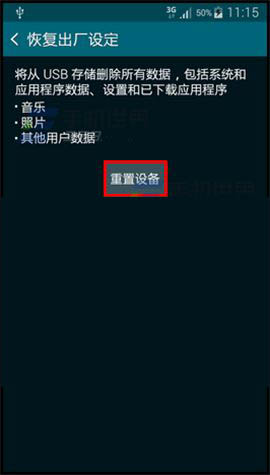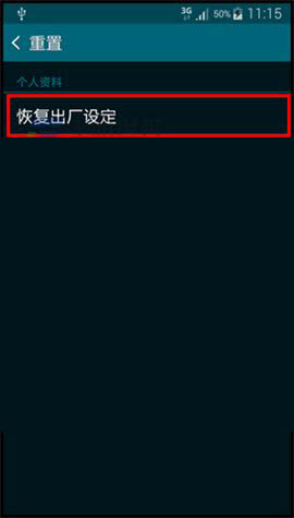1)打开三星Note4的【设定】,选择【重置】,点击【恢复出厂设定】。(如下图)