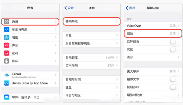 第一步:打开「设置」应用程序,转到「通用」-「辅助功能」-「缩放」选项。