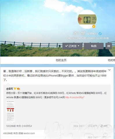 分析师潘九堂今天早上在微博上表示,他更期待今年底或者明年初小米的两款新机,其尺寸比iPhone 6更大且更帅,当然定价可能也不止1999元了。
