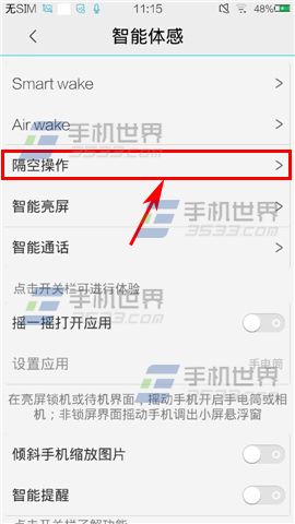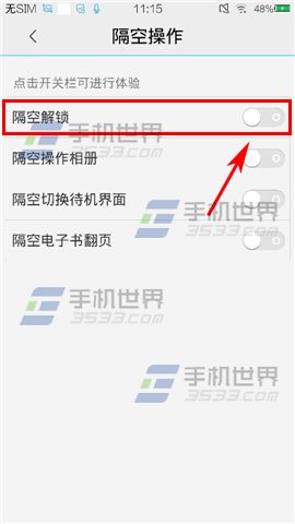 手机学院 > 安卓手机 > vivo Xplay3S隔空解锁屏幕怎么关闭 2014-11-15 10:18:09 脚本之家 这篇文章主要介绍了vivo Xplay3S隔空解锁屏幕怎么关闭,今天就为大家做详细介绍,需要的朋友可以一起看看 1)打开vivo Xplay3S的【设置】,选择【智能体感】。 2)选择【隔空操作】,然后把【隔空解锁】选项关闭即可。
