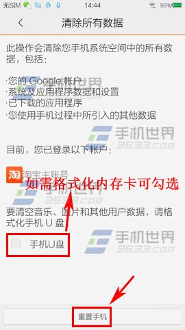 2)选择【清空所有设置】,然后有一个【手机U盘】我们可以视情况勾选,最后点击【重置手机】即可格式化vivo X5。(如下图)