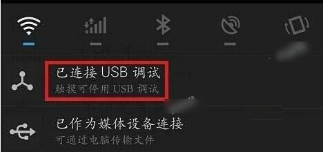 首先先将数据线,将魅蓝Note和开机的电脑连接,然后在魅蓝Note屏幕底部用手指向下滑,打开顶部下拉快捷菜单中,之后再点击【已连接USB设备】,进入里面就可以快速找到USB调试设置了,将usb调试打开即可,如下图所示: