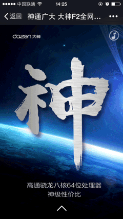 大神将会联合高通骁龙、天猫电器城、爱施德发布大神F2全网通版,大神F2全网通能支持电信、移动、联通 三大运营商的4G、3G、2G网络,全网通吃,拥有5.5英寸大屏幕和高通八核64位CPU,拥有不错的配置。此前有报道称该机售价可能为1199元,比目前配备四核全网通产品荣耀畅玩4X的1299元还低,具有很高的性价比。