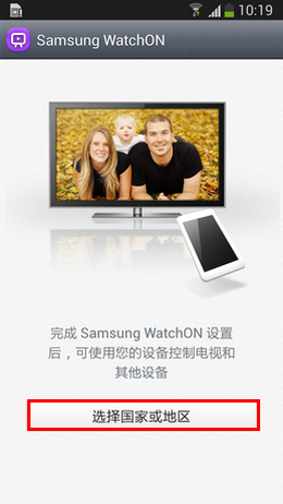 3、进入后,首次运行Watch ON,1.点击【选择国家或地区】,点击【China】,如下图所示