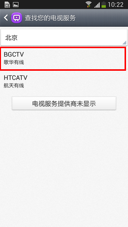 5、选择城市后,确认有线电视服务商,这里以“歌华有线”为例,如下图所示