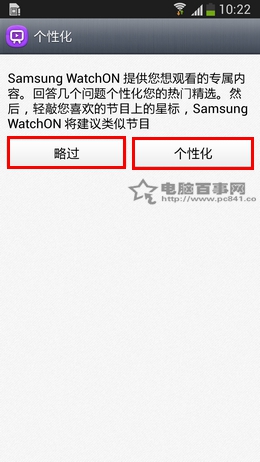 6、选择【个性化】可以设置您想观看的专属内容,选择【略过】可直接使用遥控器功能。这里以【略过】为例。如下图所示