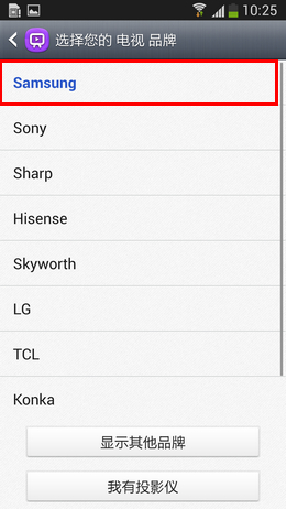 9、进入后,会让你选择电视机品牌,这里以“Samsung”为例,如下图所示