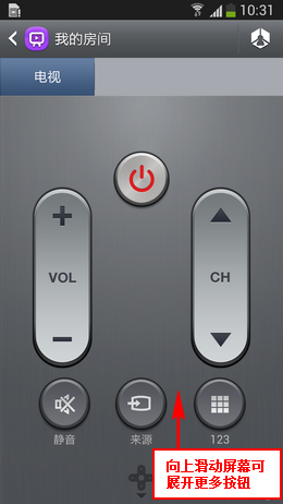 (注意:此功能是通过红外实现的,所以请您使用此功能时,将手机正面朝上正对电视就可以了。)