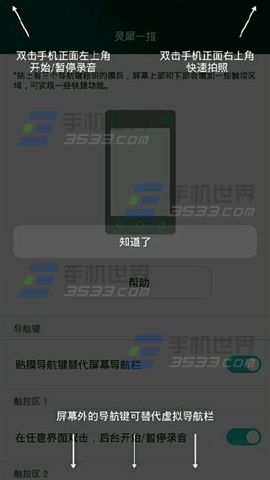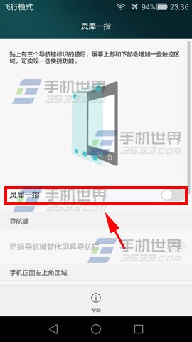 2)开启该功能后,我们首先要贴上膜。这时屏幕集成的三枚导航键也可以隐藏起来用。灵犀一指替换。(如下图)