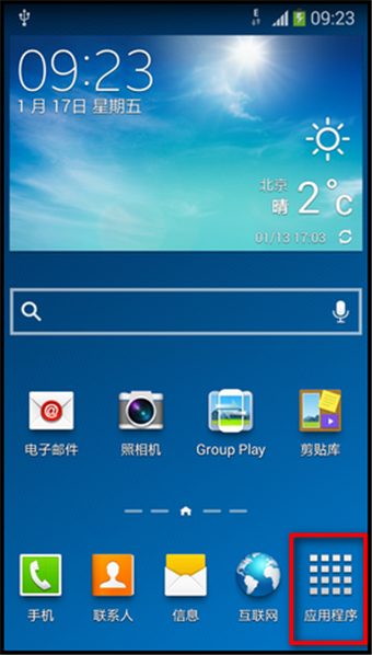 1.待机页面下,点击【应用程序】图标。