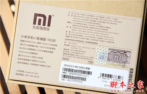 我们手上这部是16GB的联通版小米4,采用的是高通MSM8274AC处理器,支持WCDMA、GSM制式,这也是将在7月29日开始发售的首批小米4。
