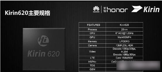 海思全新的产品Kirin(麒麟)620是一颗基于ARMA53架构的64位处理器,内置八颗可独立工作的核心,基于28nm制程打造,主频1.2GHz。图形处理器方面,麒麟620使用了Mail-450MP4,这和之前麒麟910上使用的完全一样。基带芯片也和之前一样支持五模(TDD-LTE、FDD-LTE、TD-SCDMA、WCDMA以及GSM)网络,只不过620只支持LTEcat4标准。骁龙410处理器是定位低端的处理器,基于Cortex-A53架构,采用台积电28纳米LP封装工艺,内存支持单通道64-bitLPDDR2/3,GPU型号为Adreno306。麒麟620是1.2GHz八核!!!410才1.2-1.4GHz四核,麒麟620的CPU性能理论上是骁龙410的两倍!!!麒麟620是定位中端的处理器,竞争芯片是骁龙615八核处理器。