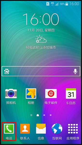 1.在待机页面下,点击【电话】。