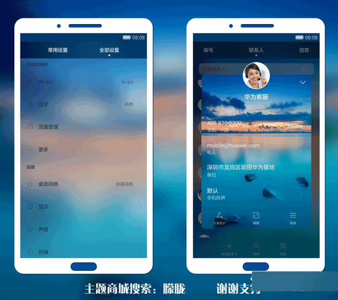 使用方法,下载网盘中的文件,让后拷贝至手机自带存储空间中的Hwthemes文件夹,再进入手机自带的主题应用,在“我的”分类中就可以看到新加入的主题。