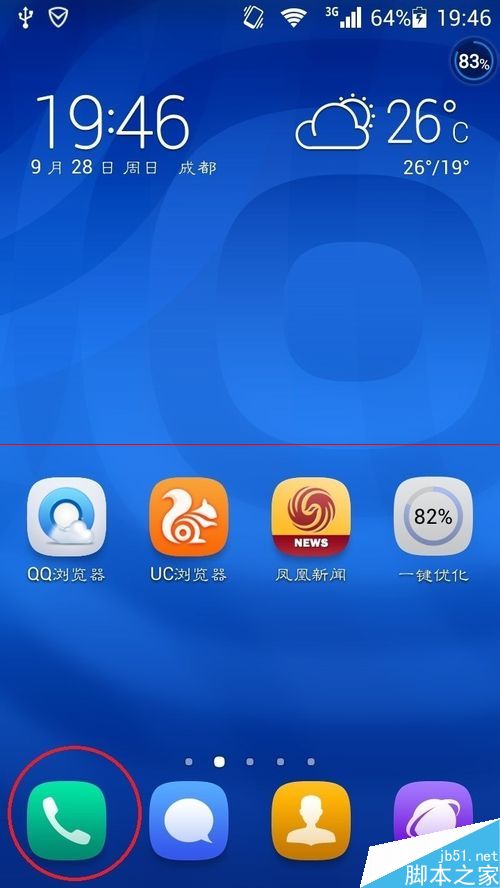 2、下面就开始正式设置。首先在主界面点击拨号图标。如图中红色圈圈中的图标。