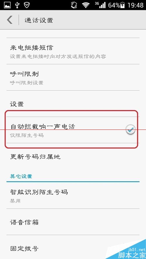 华为荣耀3C手机设置自动拦截响一声电话的教程