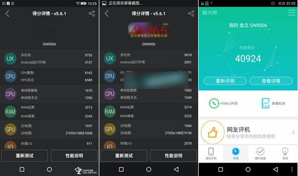 通过前面的金立S7和金立S5.1参数对比,我们可以明显看出,新一代金立S7相比上一代产品,在处理器、内存等关乎性能的核心硬件都有明显升级。下面我们通过金立S7和金立S5.1跑分测试,看看两者的性能差距。