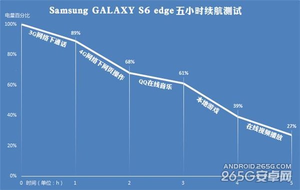 不过在实际的体验中,S6 edge续航的问题没有想象中那样不堪一击。五小时的压力测试完成后,手机的剩余电量27%,和去年的S5类似,但正常使用还是需要一天一充。
