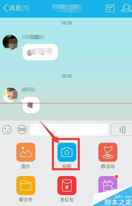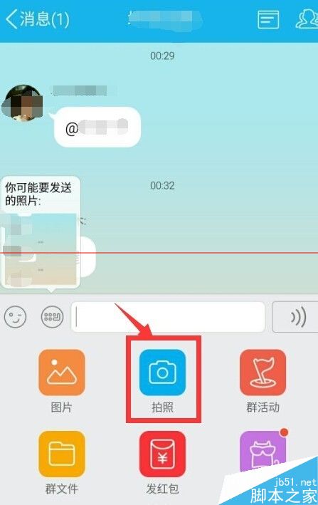 5、此时返回QQ聊天窗口中,点击“拍照”,此时就可任意自拍咯、