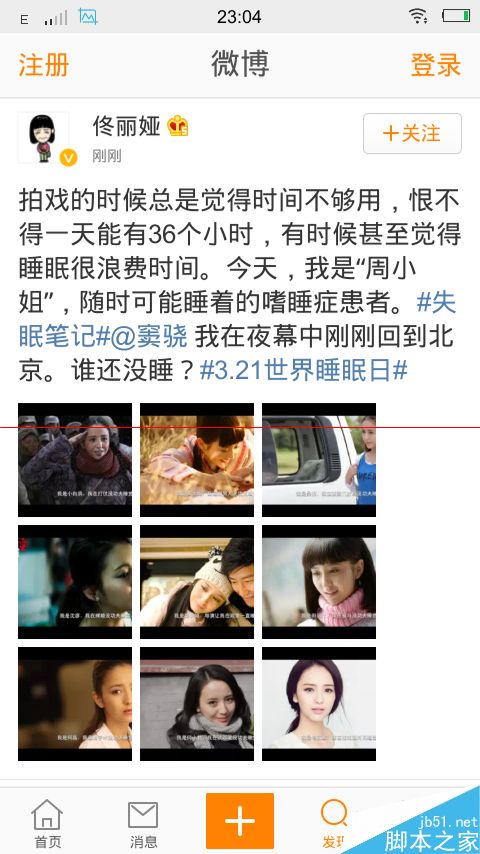 1、把手机屏幕翻到你想截图的页面,比如微博,