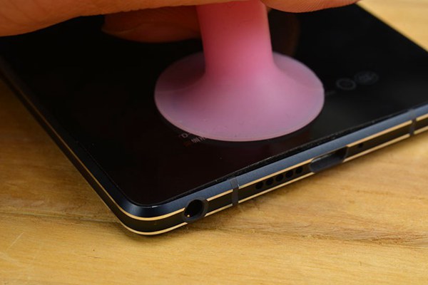 拆解首先需要对金立S7的背面进行加热,目的是让双面胶受热熔解,之后才可以将后盖拆解下来。背面加热均匀后,只需要使用吸盘,就可以将后盖拉开,如下图所示。
