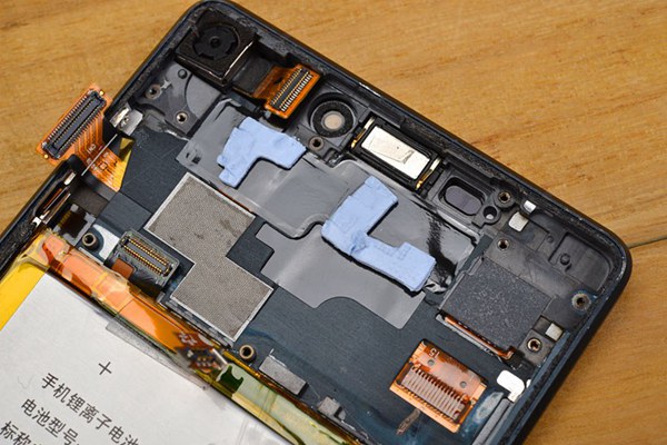 另外也可以看到PCB的背面也有散热硅胶,从这些细节可以看出,对于这款一款超薄手机,金立对其散热也是有充分考虑的。