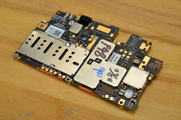 金立S7主板PCB背面主要是插槽和连接器,如图所示。