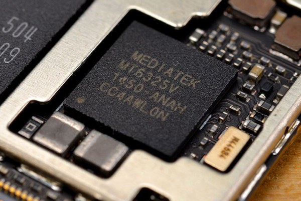 图为MT6169基带射频芯片特写,主要负责手机的4G和3G信号部分。