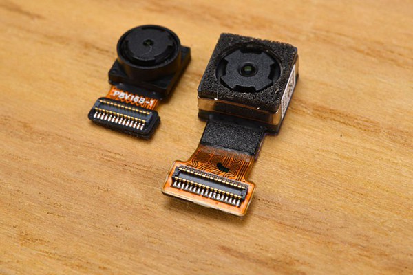 图为拆卸下来的金立S7前后双摄像头特写,金立ELIFE S7采用1300万像素主摄像头和500万像素前置摄像头。