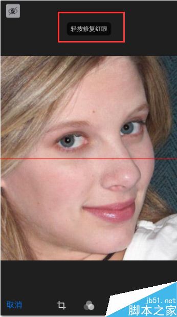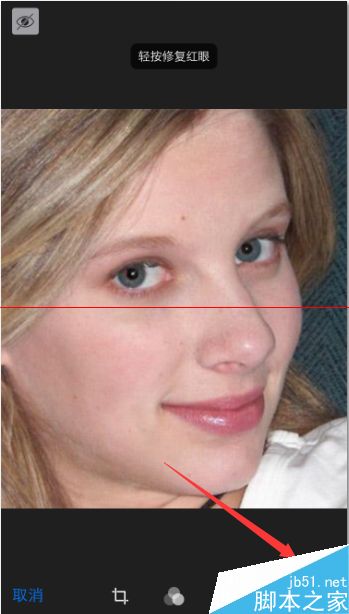 5、出来轻按修复红眼的命令提示,我们轻轻按一下红眼。