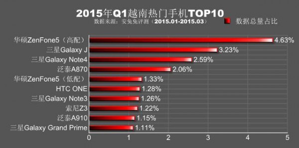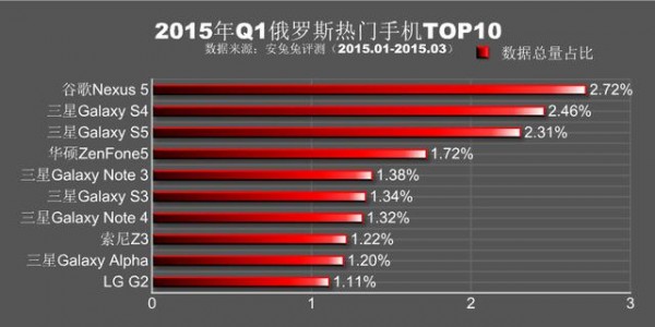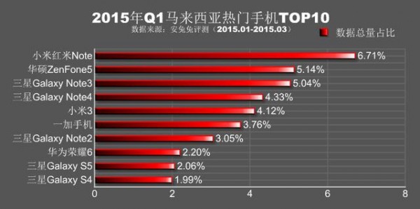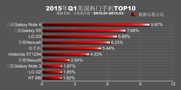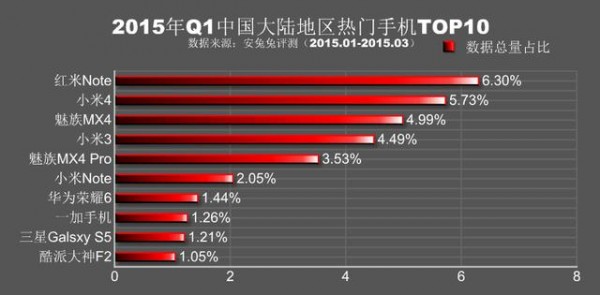 安兔兔公布:2015年Q1各地区热门手机TOP10