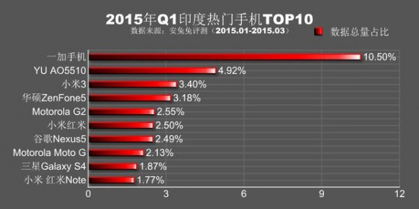 有人说印度是个开挂的名族,开始我不太明白是什么意思,后来看到这款YU AO5510(晕or云?)手机的时候,我相信阿三有一天肯定能创造奇迹!外界一直传言,一加和小米在印度干的火热,从印度的热门手机当中,我们也能够看到这一发展趋势。比较出乎意料的是摩托罗拉在印度的市场非常好,甚至比三星还要受欢迎。华硕的ZenFone5也比较受印度人的喜爱。