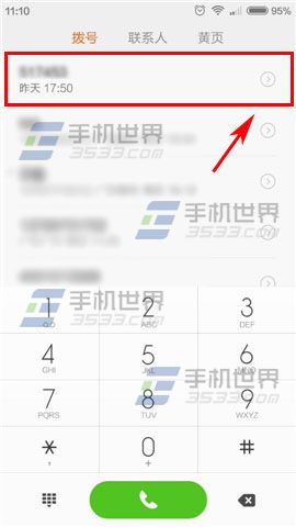1)进入小米Note拨号界面,点击要拉黑的【电话号码】,进入联系人界面点击【更多】;(如下图)