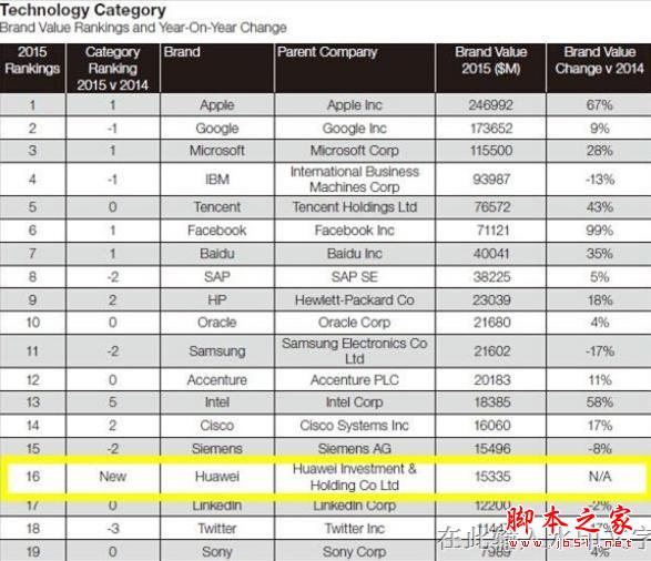 荣耀6立下汗马功劳 华为入围2015年全球品牌百强